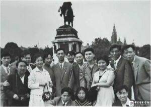 20世纪50年代,留学捷克布拉格音乐学院时与同学合影(第二排左1为陶纯孝)