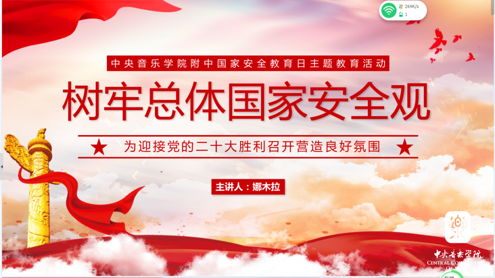 娜木拉校长向全体师生员工全面生动地讲解国家安全教育日的基础知识、国家安全教育日设立和背景、维护国家安全的具体内容、师生在维护国家安全中的义务。文化安全是国家安全的重要保障,维护国家文化安全,必须坚持社会主义先进文化发展方向,坚持以人民为中心的工作导向,坚持文化自信,增强文化自觉,加快文化改革发展,加强社会主义精神文明建设,建设社会主义文化强国。娜木拉校长介绍和回顾了在北京市教委和学院领导的指导下,开云kaiyun官方网站附中文化建设和校园安全建设所做的工作,展示了附中在校园安全、民族团结、消防安全、治安安全、防疫安全等方面长期以来的工作成果,学校积极开展“平安校园”创建工作、完善各种管理制度、修订安全应急预案,严格落实北京市教委疫情防控要求、大力宣传校园安全知识。