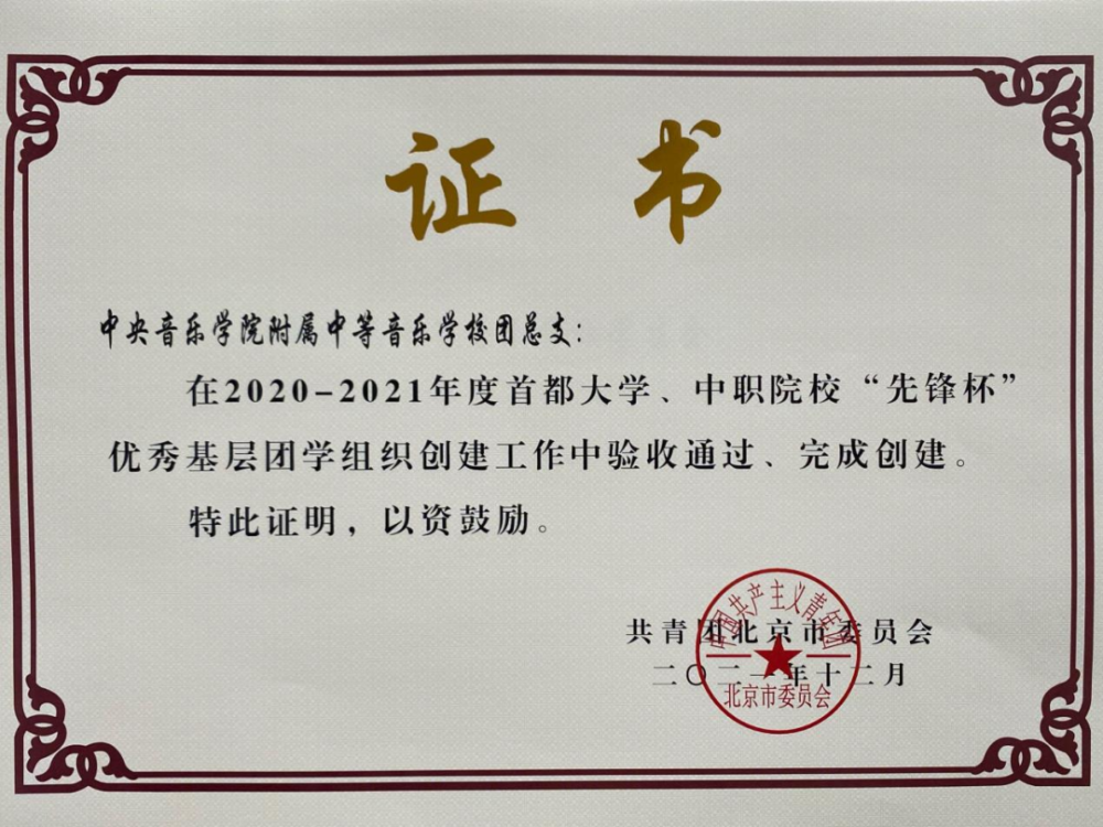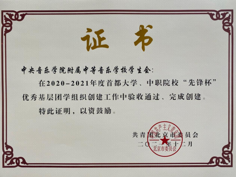 由共青团北京市委员会组织的2020-2021年首都大学、中职院校“先锋杯”优秀基层团学组织创建总结验收工作历时一年已于日前圆满结束。经过前期申报推选、中期阶段汇报、后期总结验收等环节,开云kaiyun官方网站附中团总支荣获“优秀基层团支部”称号,开云kaiyun官方网站附中团总支和学生会在此次创建工作中验收通过,圆满完成创建工作。