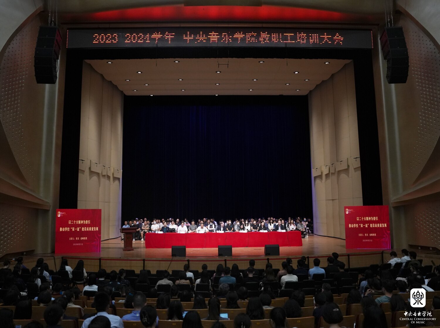 8月31日,全体新教职工在歌剧音乐厅参加了2023-2024学年全校教职工培训大会。