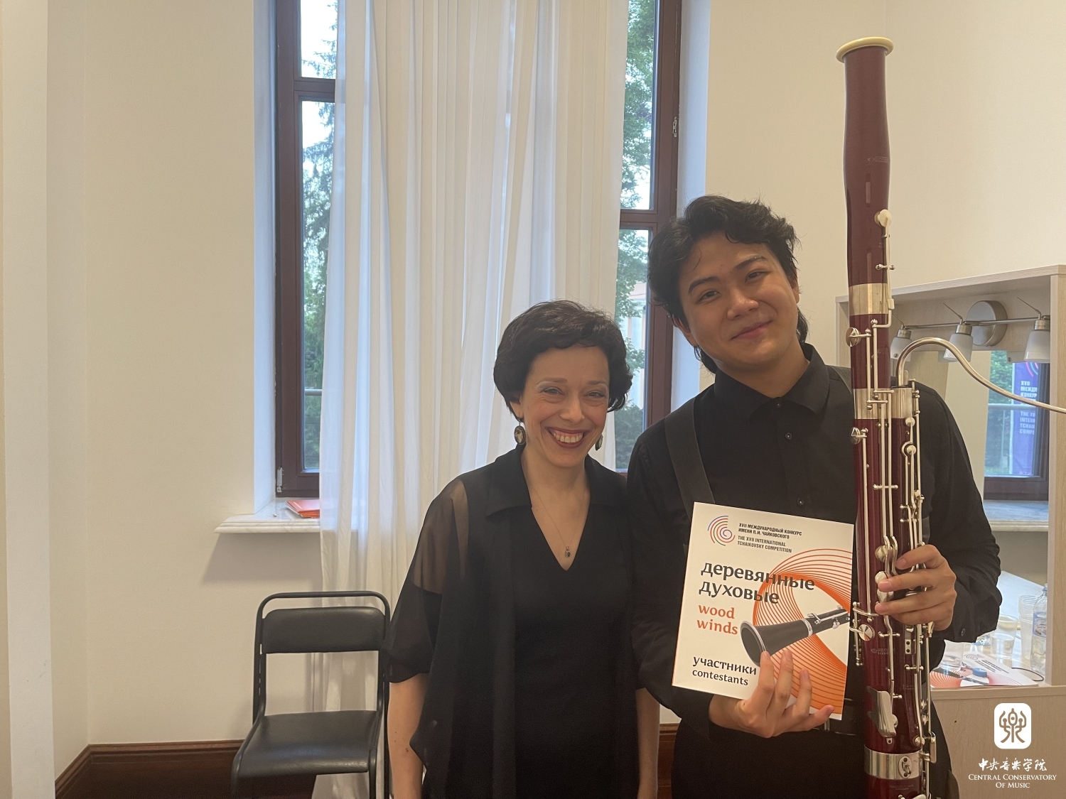 在比赛期间,我也很愿意去和其他选手交流,在我们到达的第一天,有一位哥斯达黎加的巴松选手就跟我说他箱子丢了,全身上下只有一身衣服。我想,他肯定不能穿着花衬衫拖鞋上台,正好我带了好几身演出服,我俩身材也差不多,我们就商量好了,我借他一套,不过好在在比赛前,机场及时找到了他的箱子。所有的选手都很友好,认识了很多新朋友。李岚松老师也每天起早贪黑陪着我排练走台,帮我录像,时刻给我指导,我在演奏时老师也跟着我一起紧张,公布结果时一起高兴一起遗憾。国家大剧院总经理任小珑也在时刻关注我,给予我很多鼓励,晶晶师哥一家也一直熬夜在看我的直播,每次我从舞台上下来,看见手机里各位老师、同事、同学和朋友们的祝福,内心都特别感动。感谢学校对我的支持,将来我会在国内继续攻读研究生,我也会总结这次的经验,再有国际大赛,我还会积极参加,尽力练琴,我相信下次会有更好的结果!我会继续为学校争光!