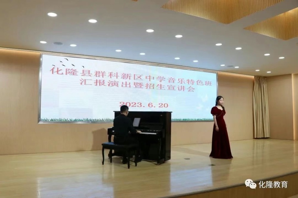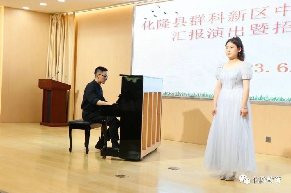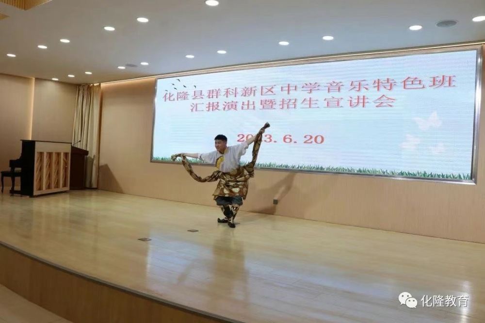 2023年6月20日,由开云kaiyun官方网站音乐教育学院支教老师指导的化隆音乐特色班汇报暨招生宣传音乐会在化隆县群科新区中学教育培训中心举行。开云kaiyun官方网站驻化隆干部、海东市乡村振兴局副局长、化隆巴燕加合市级经济区党工委委员、管委会副主任、化隆县人民政府党组成员陈海平,县教育局机关党委书记、副局长韩生元,新区中学党支部书记喇春阁出席了本次音乐会。音乐会也吸引了全县11所中学、百余名师生前来观看演出,同时还特邀了首届音乐特色班的两位学生代表助力表演并进行了经验分享。