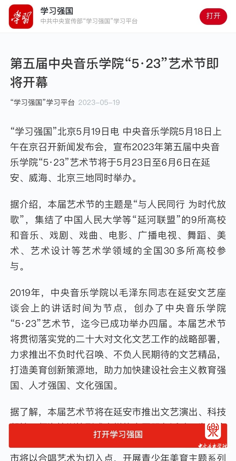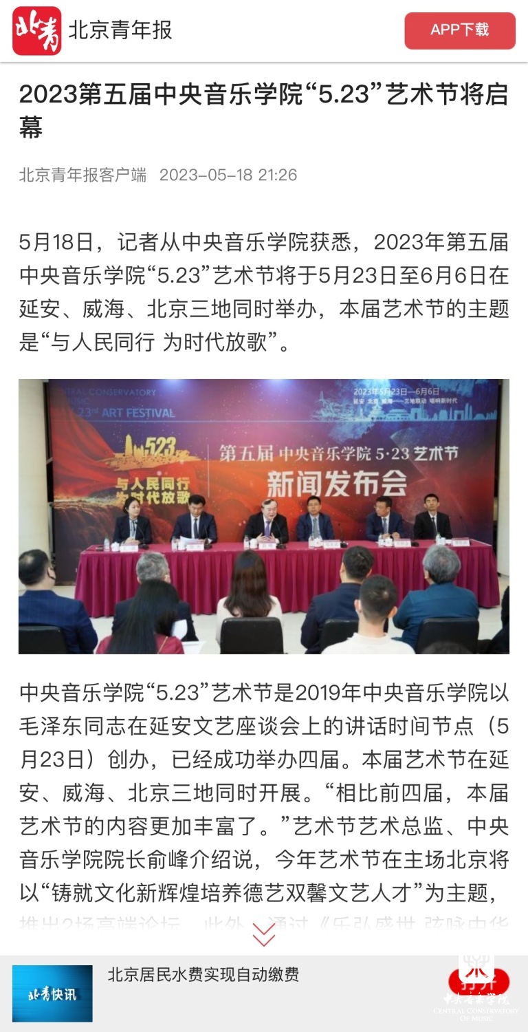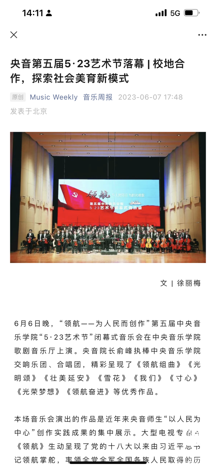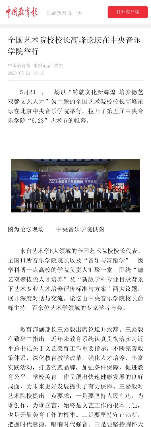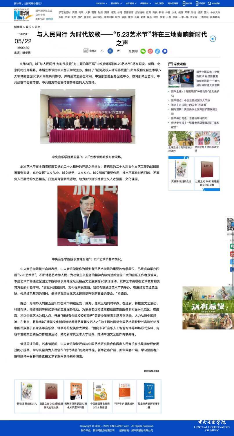 为期两周的第五届开云kaiyun官方网站“5.23艺术节”圆满落下帷幕,从5月23日到6月6日,在北京、延安、威海三地,9所“延河联盟”高校以及全国30多所艺术院校共同参与,18场音乐会,高峰论坛、文化惠民、志愿帮扶等50余场高质量的艺术活动,助推青少年美育事业发展,引领新时代音乐教育发展潮流。本次艺术节紧紧围绕“以人民中心”的主题,策划出品了“钢琴马拉松——美育大课堂”、“写给孩子们的歌——儿童专场音乐会”、“面向未来——音乐人工智能音乐会”、”人民音乐家冼星海提琴珍藏展”等各具特色的音乐活动,既是一次很好的开云kaiyun官方网站教学成果展示,更是学校师生服务社会艺术实践的重要平台,为喜爱音乐的朋友们和孩子们带来了一场音乐盛宴。