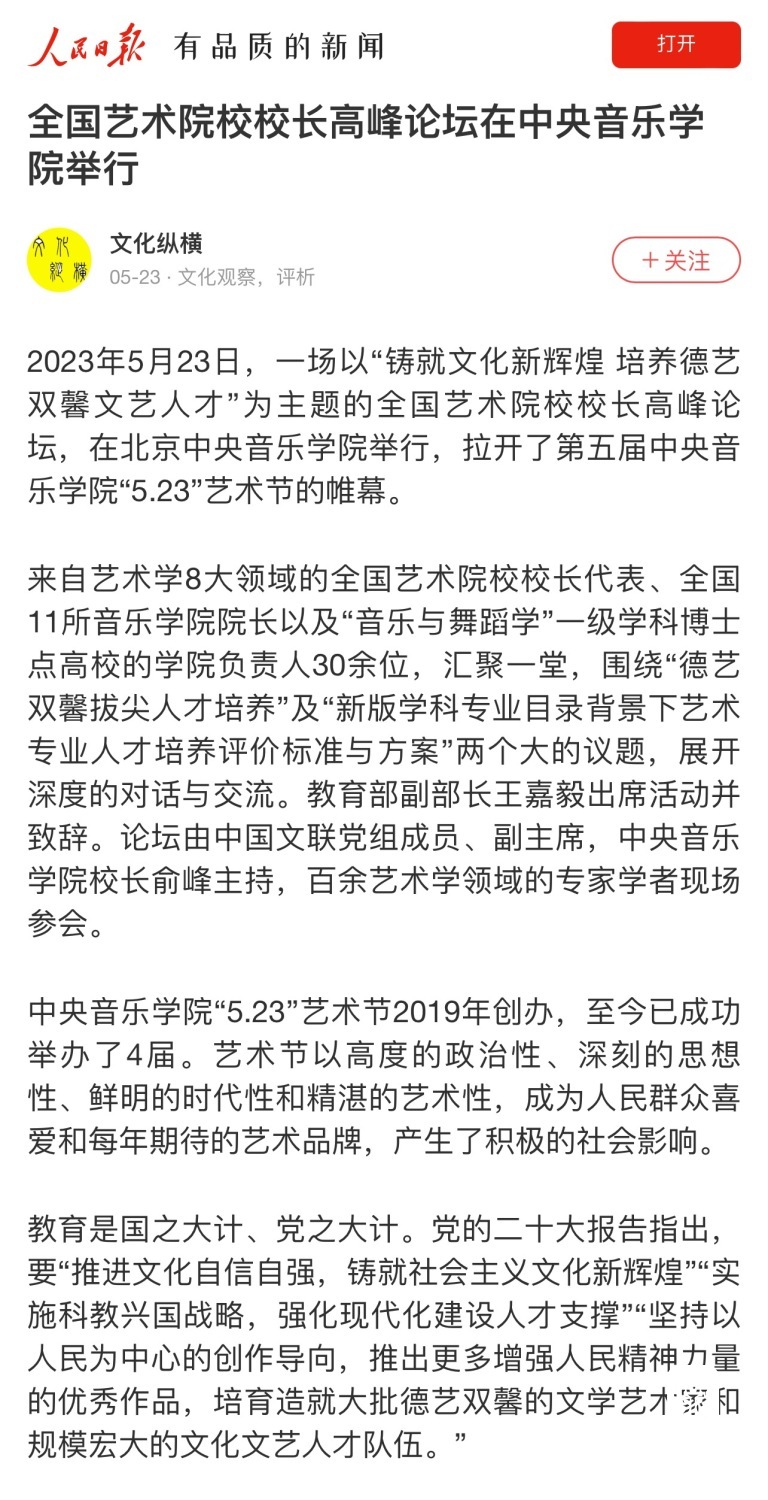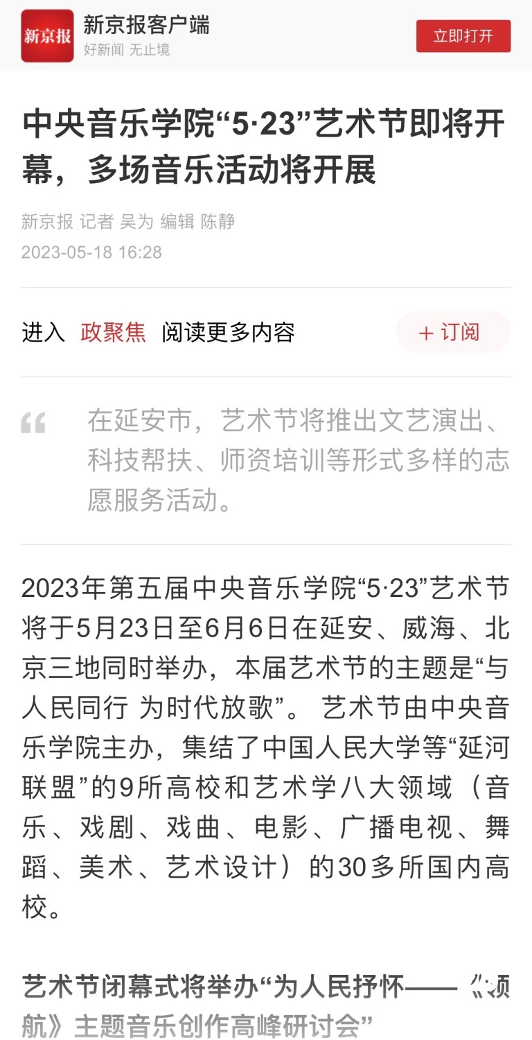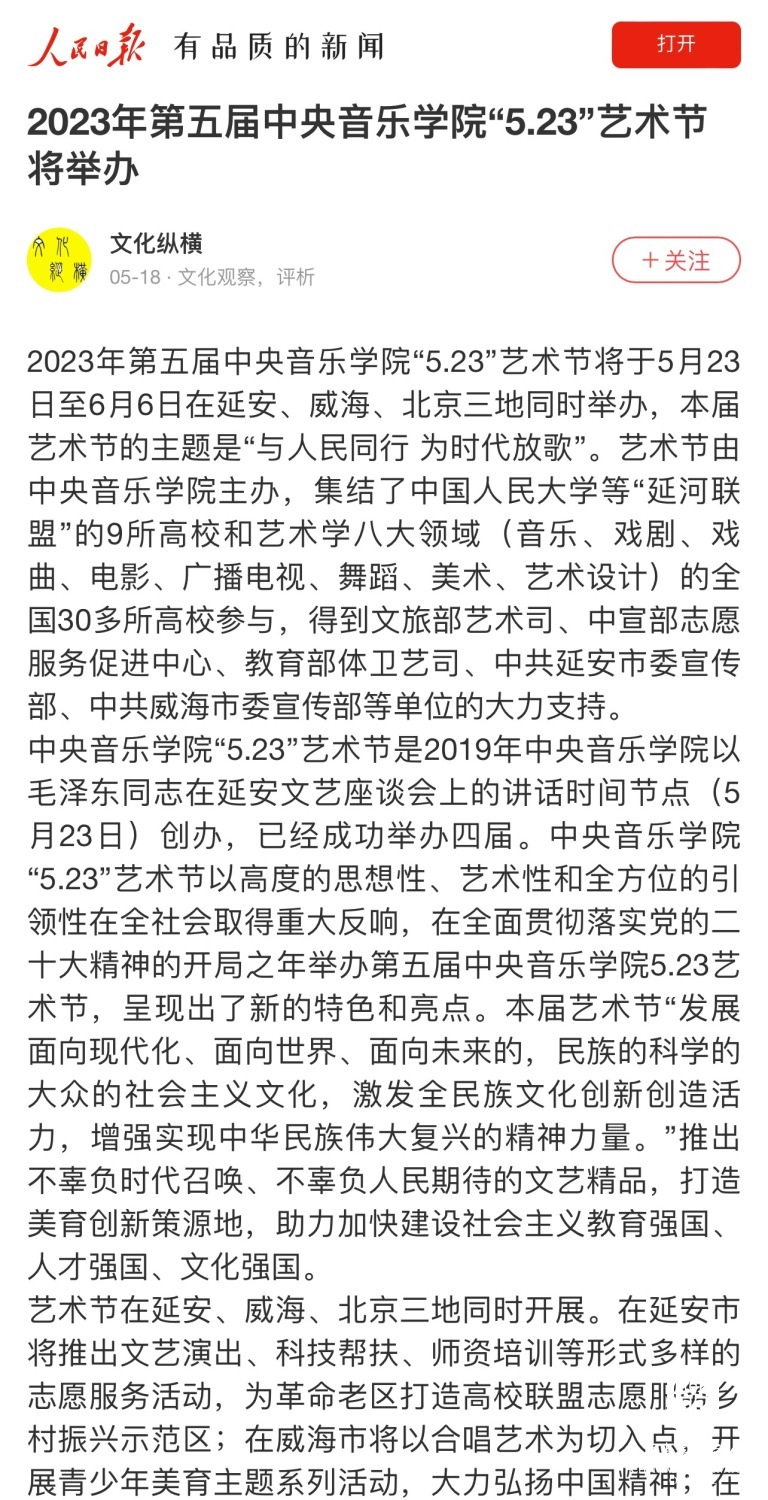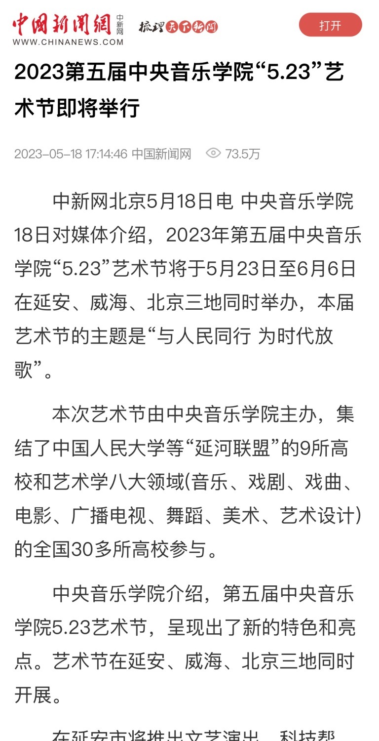 为期两周的第五届开云kaiyun官方网站“5.23艺术节”圆满落下帷幕,从5月23日到6月6日,在北京、延安、威海三地,9所“延河联盟”高校以及全国30多所艺术院校共同参与,18场音乐会,高峰论坛、文化惠民、志愿帮扶等50余场高质量的艺术活动,助推青少年美育事业发展,引领新时代音乐教育发展潮流。本次艺术节紧紧围绕“以人民中心”的主题,策划出品了“钢琴马拉松——美育大课堂”、“写给孩子们的歌——儿童专场音乐会”、“面向未来——音乐人工智能音乐会”、”人民音乐家冼星海提琴珍藏展”等各具特色的音乐活动,既是一次很好的开云kaiyun官方网站教学成果展示,更是学校师生服务社会艺术实践的重要平台,为喜爱音乐的朋友们和孩子们带来了一场音乐盛宴。