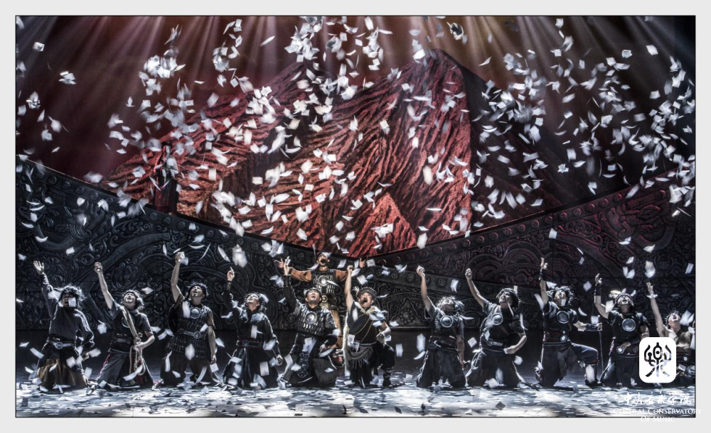 QQ:最开始的剧本完全是中文音乐剧剧本,但是通过演员的反复试唱,总导演与我都认为有些段落如果能够用本民族的母语发声,从藏羌民族的心理和文化本身去创作剧本与音乐,会使艺术表达更具有高级感。在创作这些段落中,我先按照汉语行文的感觉,把曲和编曲DEMO完成后,邀请了当地古藏语的民俗专家逐字进行翻译并给团里的演员上课,学习古藏语的发音。加上后续导演的编排以及整个舞台的调度,当然也借助了一些影视的手法,完成了这部分的创作。