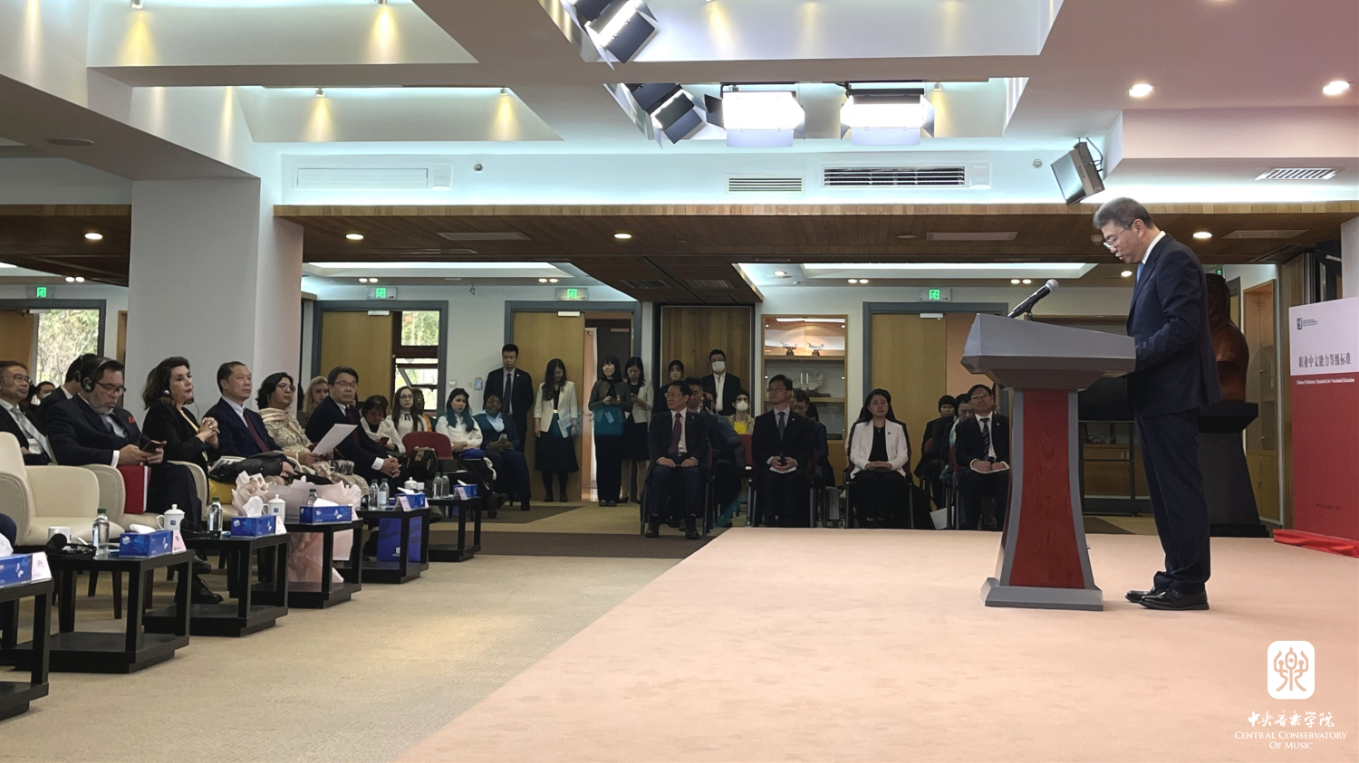 教育部副部长吴岩出席仪式并发表主旨讲话,开云官网党委书记赵旻应邀出席活动,并与上海合作组织秘书长张明、印度尼西亚驻华大使周浩黎、北京外国语大学校长杨丹、中铝股份有限公司人力资源部总经理石森、“新汉学计划”青年学者范狄等中外嘉宾一起,共同见证“中海人文交流和文明互鉴双语文库”项目启动和《职业中文能力标准》发布,印尼驻华大使夫人艾茜薇女士“画布上的多彩生活”画展揭幕,语合中心与哈尔滨、兰州、连云港签署“中文+”项目协议等系列仪式,共同启动2023年“国际中文日”。