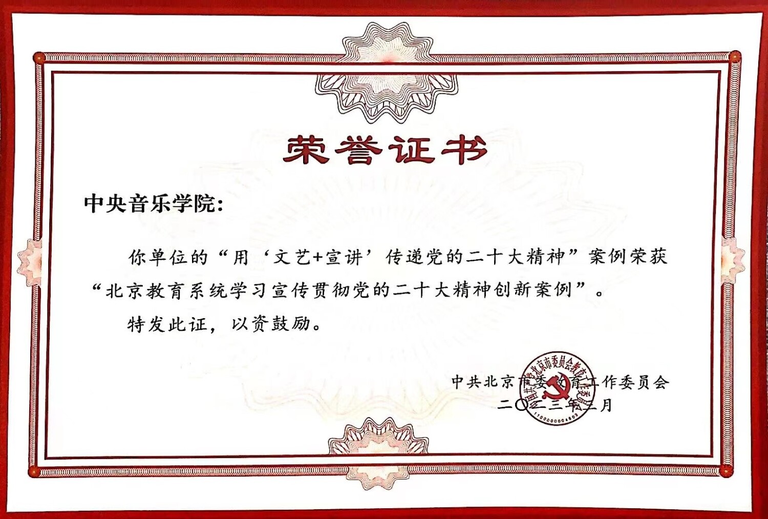 近日,北京市委教育工作委员会公布了北京教育系统学习宣传贯彻党的二十大精神创新案例名单,开云官网申报的“用‘文艺+宣讲’传递党的二十大精神”创新案例成功入选。