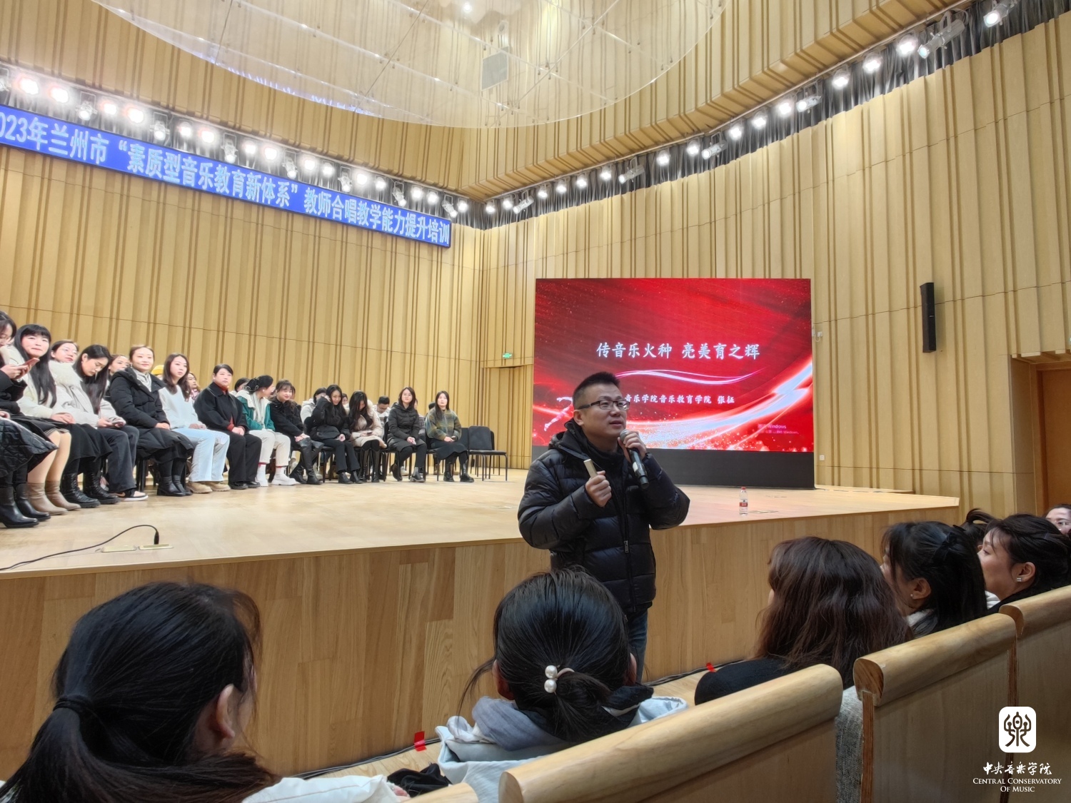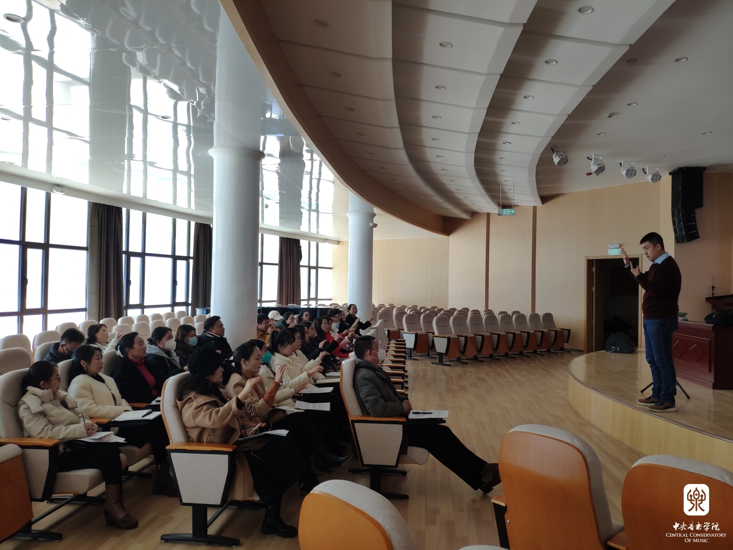 姚瑶副教授以“新体系歌唱教学——合唱教学”为主题与音乐教师进行交流研讨